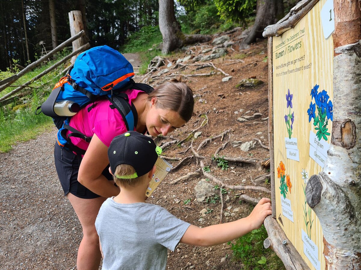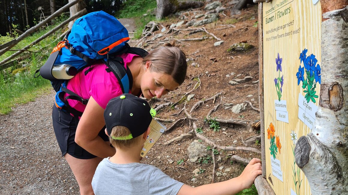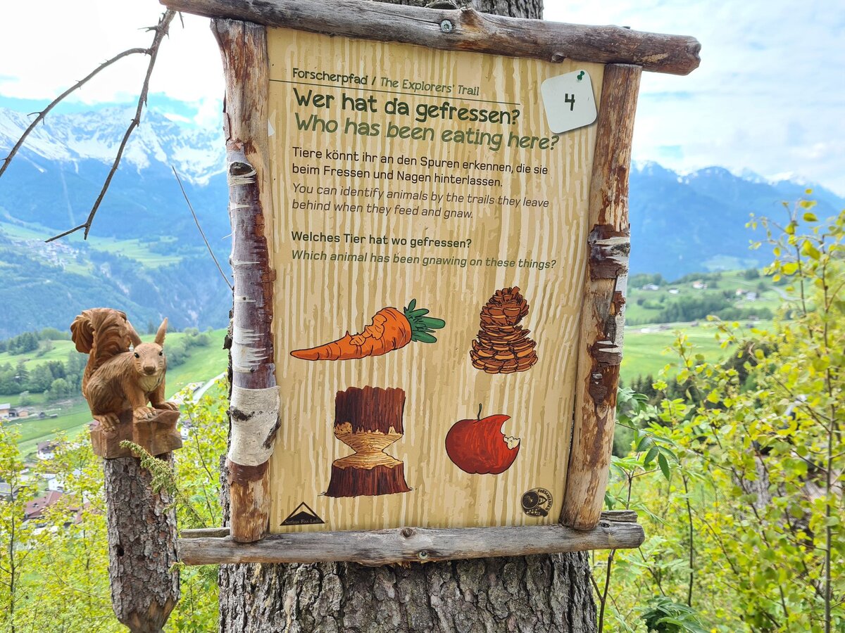 Für unsere Wanderung solltest du dir etwa 2,5 Stunden Zeit nehmen. So können die Kleinen entspannt die Natur erkunden und die Rätsel auf dem Foscherpfad ohne Hast lösen. Entlang des Weges gibt es genügend Bänke zum Rasten und Jausnen. Der Forscherpfad samt Wanderung über den Wasserwandersteig eignet sich perfekt für heiße SOMMERTAGE. Beide führen durch den schattigen Wald oberhalb von Ladis. Aufgepasst: Der Forscherpfad ist nicht kinderwagentauglich, ist aber mit einer Kinderkraxe leicht begehbar. So können auch die Kleinsten mit auf die Erkundungstour. Solltest du von Serfaus oder Fiss aus starten kannst du auch bequem den rel="noopener">Wanderbus oder die Sonnenbahn nach Ladis nutzen.