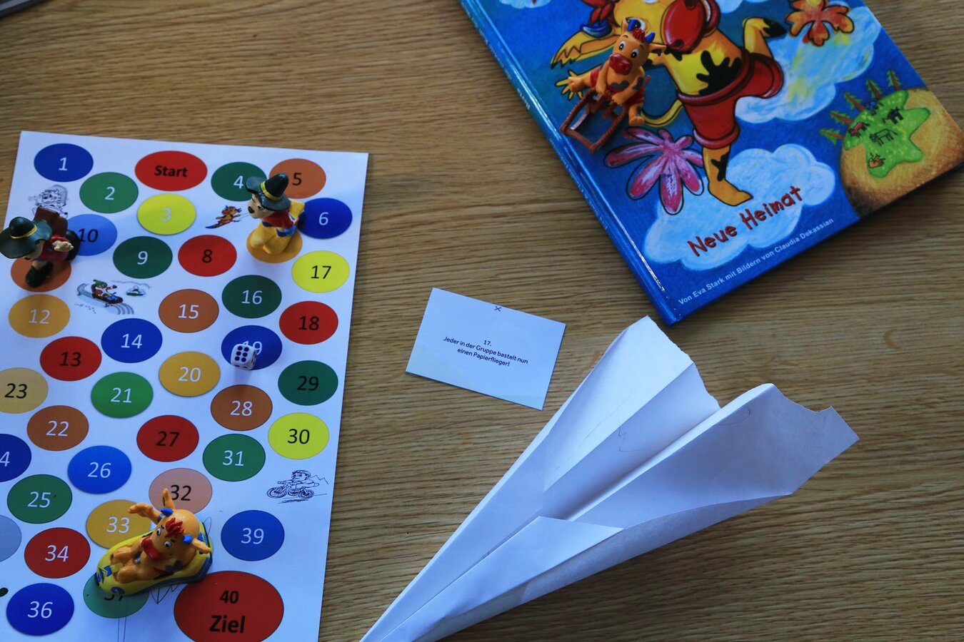 Nun versucht möglichst schnell, den Zettel mit der ihrem Feld entsprechenden Zahl zu finden und die auf der Rückseite stehende Aufgabe zu lesen, ohne den Zettel dabei zu entfernen. Trage anschließend die Aufgabe dem Spielleiter vor.