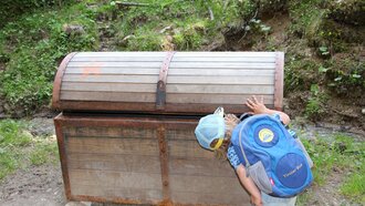 Aber der SCHATZ liegt natürlich nicht im Piratenschiff verborgen. Das wäre ja auch zu einfach, oder? Die Wanderung geht noch etwas weiter. An der nächsten Station verrät eine echte SCHATZKARTE, in welcher der nächsten Truhen der Schatz zu finden ist. Finde selbst heraus, was der Schatz auf dem Piratenweg ist. Die Suche lohnt sich: So viel verraten dir Eliah und Louis schon mal.
