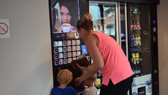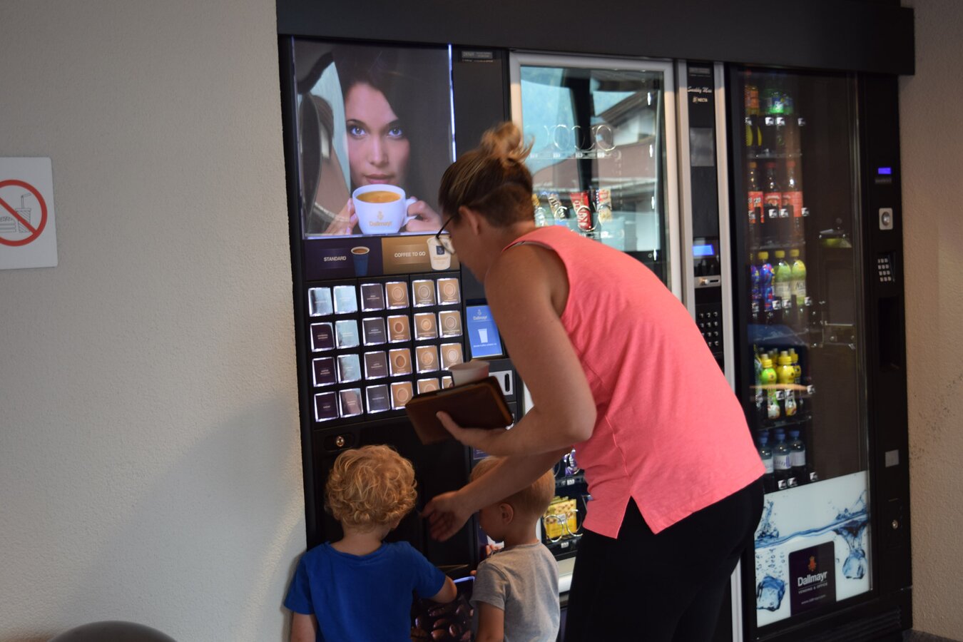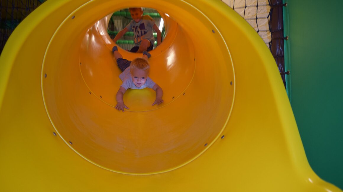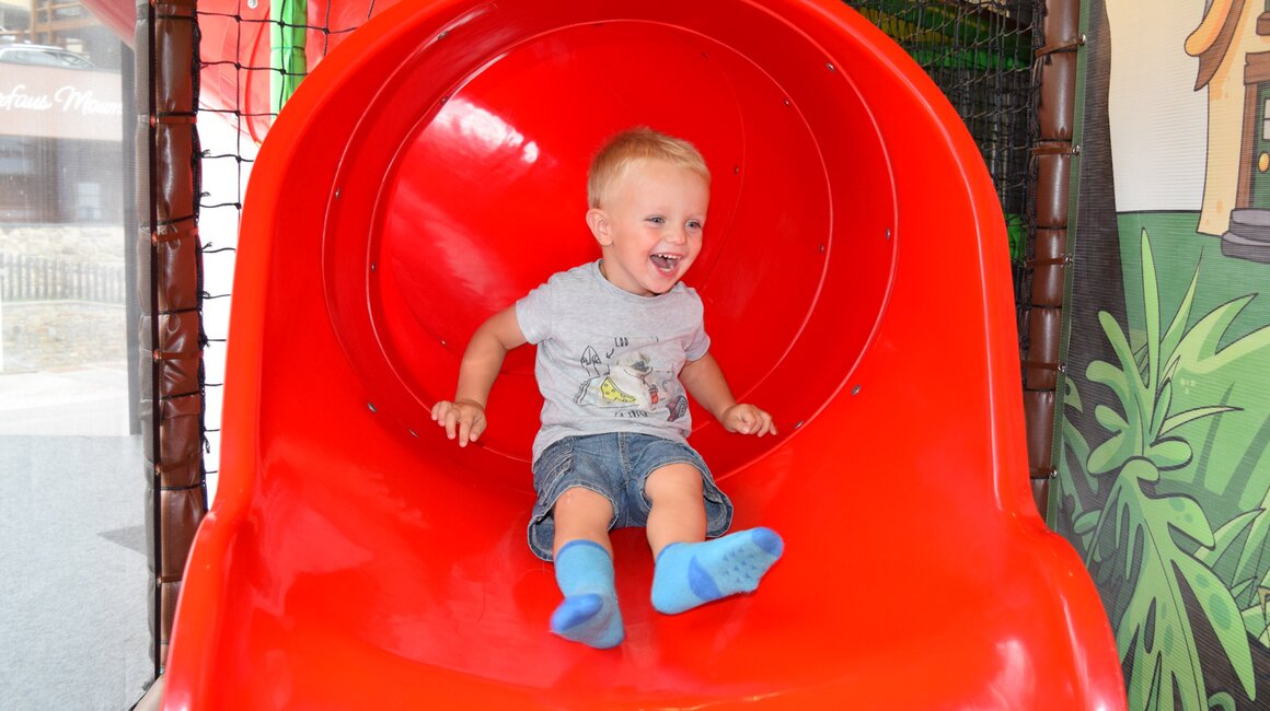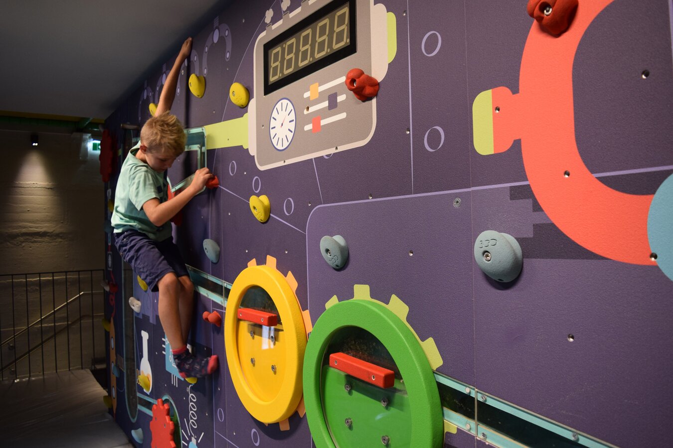 Bekanntlich halten die Erwachsenen bei diesem Tempo nicht lange mit. Für diesen Fall gibt es im Eingangsbereich bequeme Sitzgelegenheiten zum Ausruhen. Von hier aus kann man die kleinen Energiebündel über Bildschirme im Auge behalten und ein Kaffee-, Getränke- und Snackautomat bietet die Möglichkeit, sich zu stärken. Neben den Sitzgelegenheiten bieten Tablets und eine PlayWall mit Spiele-Klassikern wie Memory oder Vier Gewinnt Unterhaltung für Groß und Klein.