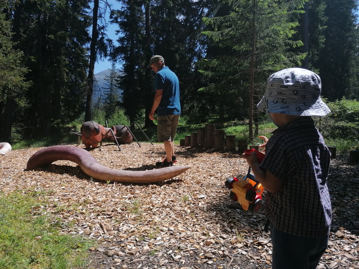 Gerade an heißen Tagen herrschen hoch oben am Lassida angenehme Temperaturen und es kann ohne groß schwitzen zu müssen herumgetollt werden. Der gigantische Panoramablick ist hier Programm. Verena liebt es, es sich in einer der zahlreichen Relaxstationen so richtig gemütlich zu machen, während die Jungs unbeschwert über den Motoriktrail sausen können. In dem ausgeklügelten Parcours ist neben Geschicklichkeit und Beweglichkeit auch Balance gefragt. Während der schon etwas ältere Eduard bereits selbst seine Touren machen kann, benötigt der jüngere Benjamin noch etwas "erwachsene" Unterstützung. Aber mit ein wenig Hilfe geht das schon ganz gut.