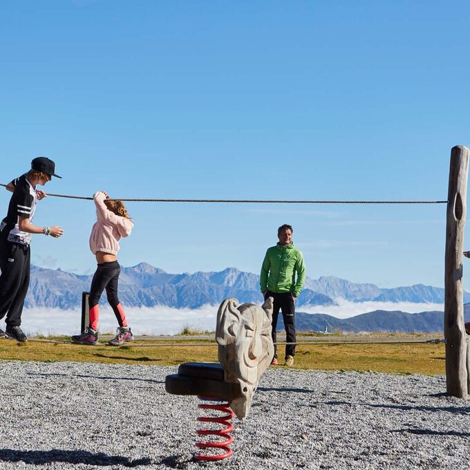 "Do douba im Kinder-Bergwerk kenna si meina Kindr so richtig austouba. Vor allem s`Spielheisla mit da Klettermöglichkeita gfollt ihna gonz bsundrs. Und i genieß drweil dia gewaltige Aussicht", so Mama Bianca. Das Schönjoch und das Kinder-Bergwerk ist der Lieblingsort der jungen Familie. Hier kommt definitiv jedes Familienmitglied voll auf seine Kosten.