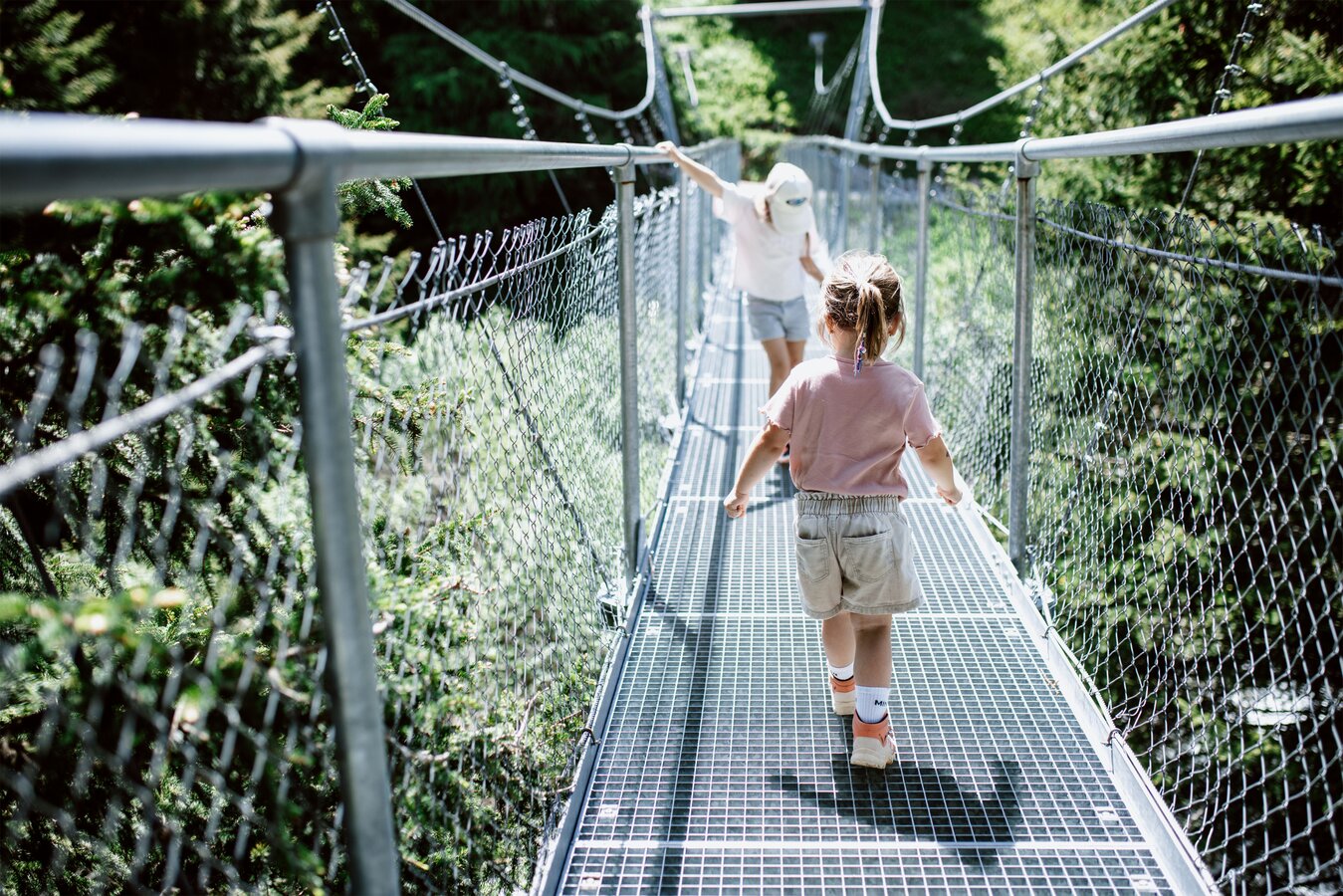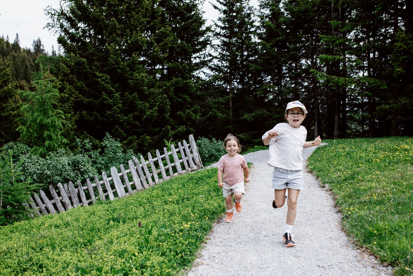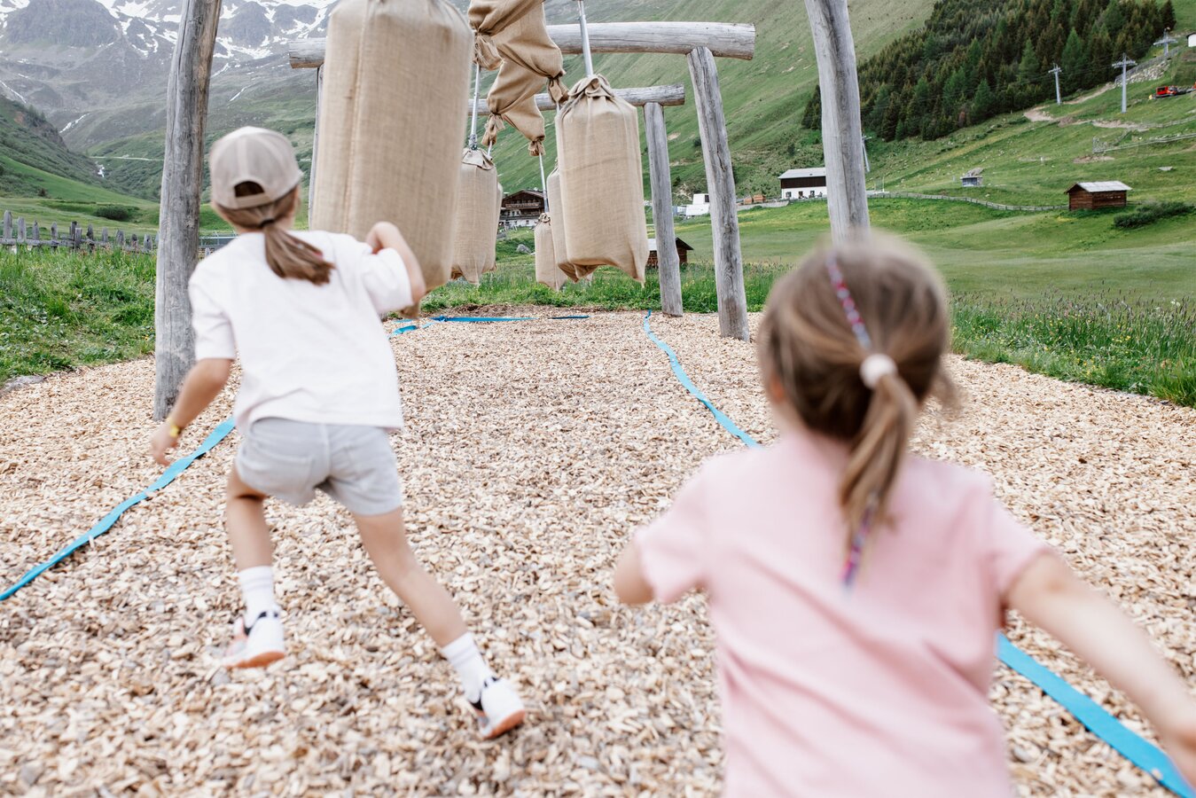 Von der Bergstation aus führt ein kurzer Spazierweg zum Murmliwasser, das auf 1.980 Metern Seehöhe liegt. Für den Rückweg steht vom Spielpark aus ein Förderband zur Verfügung. Besonders mit müden Kindern und Kinderwagen ist dies äußerst praktisch. Die namensgebenden Murmli – also die Murmeltiere – sind hier schon überall zu finden: Als überlebensgroße, aufblasbare Figuren, aus Holz geschnitzt und sogar als lebende Tiere im Murmeltiergehege, wie Ella und Flora später entdecken werden.
