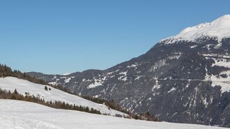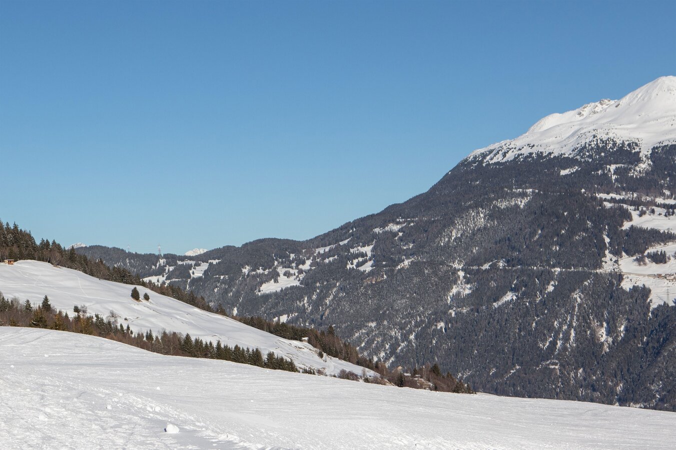 Höher, weiter, bis nach Ladis? Heute nicht. Den kompletten Winterwanderweg bis nach Obladis zu gehen bzw. kurz nach dem Falterjöchl die Abzweigung hinunter ins Dorf zu nehmen (Wanderweg nach Schönegg), erscheint uns mit Kleinkind doch ein wenig zu ambitioniert. Außerdem sind wir sonnenverliebte Winterwanderer und in den Bergen wird es ohne Sonne am späteren Nachmittag schnell kühler. Dennoch räumen wir ein: Die Weiterführung der Wanderung ist eine spannende Variante mit größeren Kindern. Pluspunkt: Mit der Sonnenbahn könnte man retour gondeln.