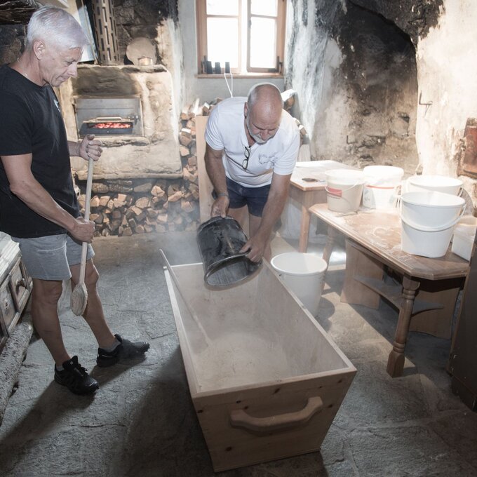 Nein, zum Mitbacken ist die Stube leider nicht geeignet. Da würde man sich doch nur gegenseitig auf die Füße steigen. Allerdings können die Räumlichkeiten im Rahmen von Ausstellungen und gesonderten Führungen im und durchs Rechelerhaus, dem vermutlich ältesten bemalten Gebäude im Oberen Gericht, gern inspiziert und bestaunt werden. Zudem kann man die feinen Erzeugnisse des Backvereins Ladis jeden zweiten Mittwoch ab 16 Uhr beim Haus selbst zusammen mit Aufstrichen, Süßspeisen und Torten sowie anderen regionalen Produkten käuflich erwerben. Und wer versuchen will, ein paar Vinschgerln nachzubacken, kann sich selbstverständlich vor Ort nach einem simplen Rezept und weiteren Tipps erkundigen. „Jeder muss aber für sich selbst herausfinden, was für ihn selbst am besten passt!“, erklärt Ulrike abschließend.