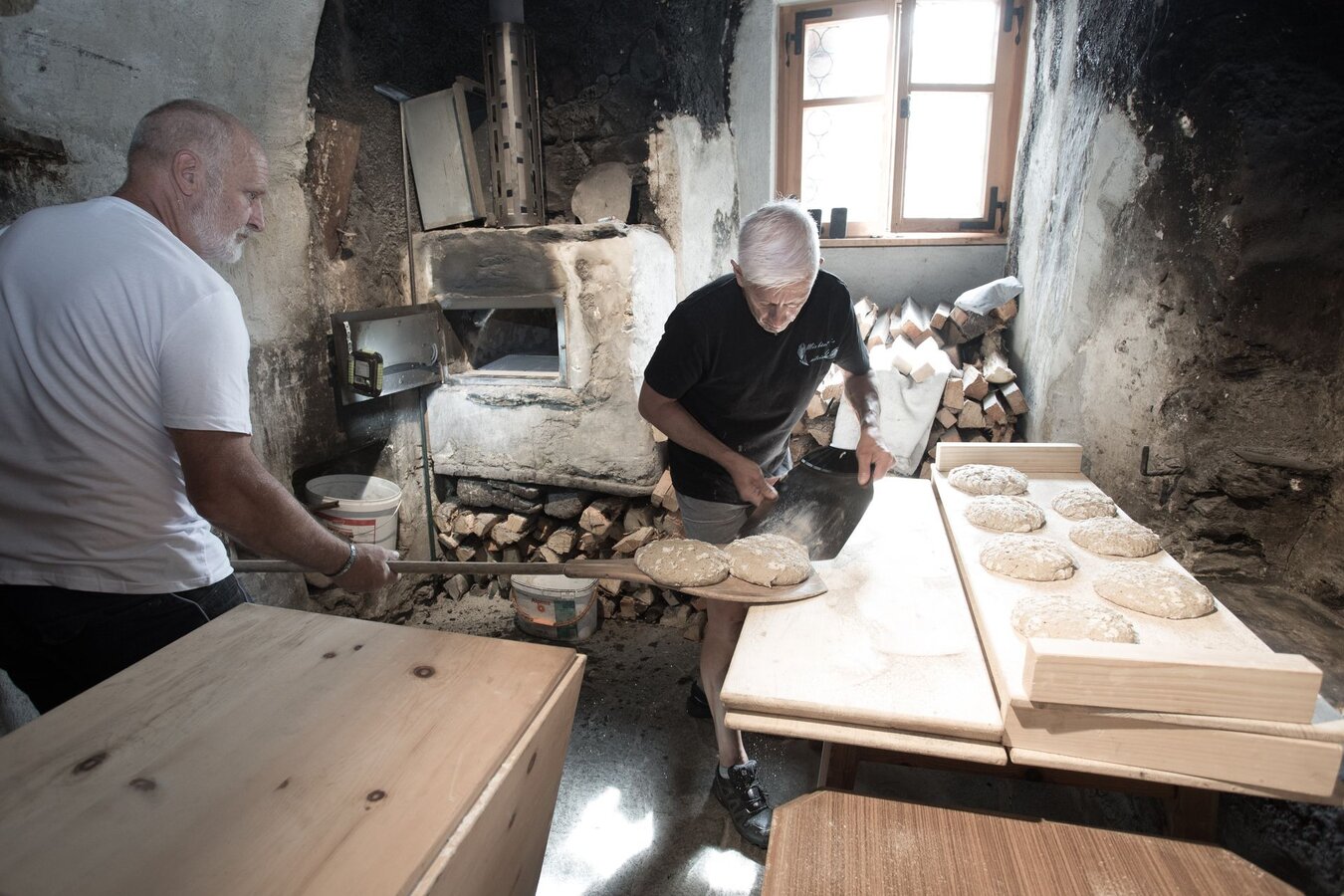 „Bei uns zuhause wurde früher ein Mal im Monat gebacken“, berichtet Stefan Netzer, der einer einheimischen Bauernfamilie entstammt, aus seiner Kindheit im Ort. Heute steht er dem 2020 gegründeten Backverein Ladis vor. Seine Augen leuchten, wenn er sich daran erinnert, wie sein Opa einst das trockene Vinschgerl zum Frühstück in den Kaffee eintunkte, um es aufzuweichen. „Die Lagerung des Brotes war damals noch ganz anders als heute“, ergänzt Stefans Frau Ulrike, die ebenfalls eine wichtige Rolle im Backverein spielt. „Zudem sind die Öfen hier in der Tiroler Region Serfaus-Fiss-Ladis schon sehr speziell, betont sie“. Stefan nickt. „Die Außenbacköfen haben im Oberinntal eine lange Tradition“, erklärt er. In Ladis gibt es ihm zufolge noch drei von ursprünglich „fünf oder sechs“ solcher Öfen, von denen wiederum zwei betriebsfähig sind. „Einer davon steht bei uns im Rechelerhaus“, so Stefan.