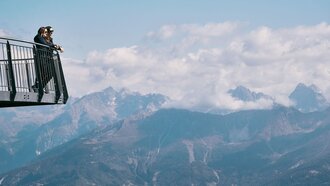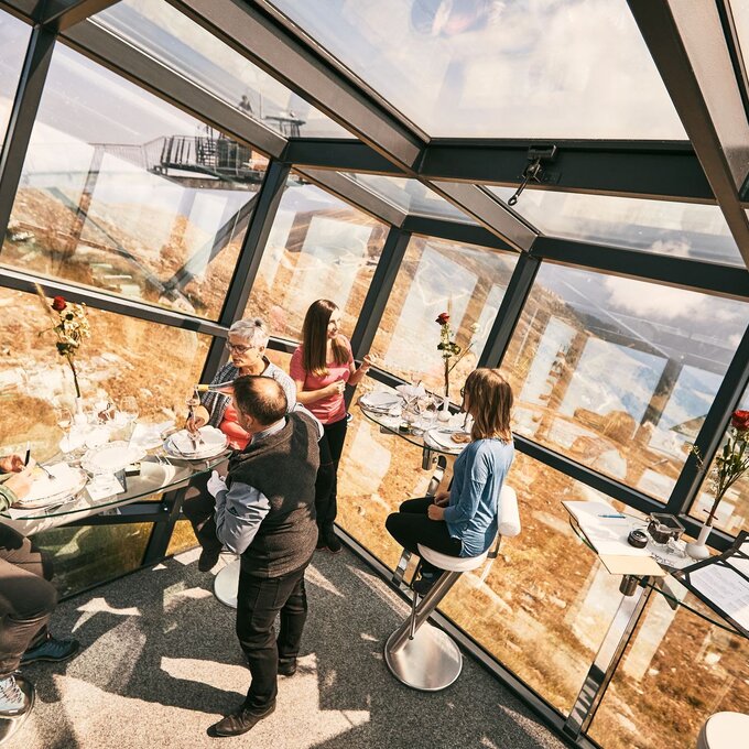 Wusstest du, dass der postmoderne Gourmet-Kubus nicht nur ein exklusives Bergrestaurant ist, sondern zugleich auch eines der höchstgelegenen Standesämter Europas? Aber augepasst: Bei diesem 360-Grad-Panorama muss man aufpassen, dass einem im entscheidenden Moment nicht die Stimme versagt.