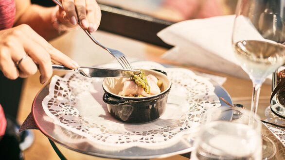 Also ich gehöre ja zu den Menschen, die sich im Urlaub gerne mal was gönnen. Für mich geht nichts über schöne Kulinarikmomente und das Verkosten von Spezialitäten aus der Region – gerne auch neu und KREATIV interpretiert. Schließlich will man ja auch überrascht werden. Das hat Peter definitiv geschafft! Zudem lege ich Wert auf Essen mit gutem GEWISSEN. Da leistet Serfaus-Fiss-Ladis einen wertvollen Beitrag. Die Bergbahnen arbeiten nämlich MIT und nicht gegen die Bauern und nehmen auch ihre Produkte ab. Und das schmeckt man. Ein AUSSERGEWÖHNLICHES SPEISEZIMMER wie der Crystal Cube setzt dem Ganzen natürlich das Krönchen auf. Einfach herrlich! Der Luxury Lunch ist definitiv ein besonderes Erlebnis für alle Kulinarik-Liebhaber, die die Region mit allen Sinnen erleben wollen.
