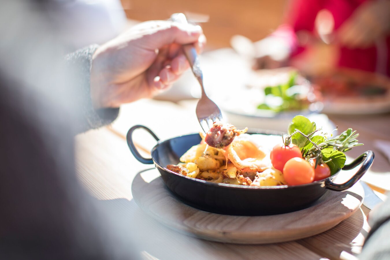 Wir haben einen eigenen Holzofen, den wir mit Buchenholz feuern. Darin werden täglich OFENFRISCHE PIZZEN gebacken. Den Pizzateig stellen wir selbstverständlich selber her. Tiefkühl-Teiglinge kommen uns nicht ins Haus. Zudem wollen wir das heimelige Ambiente auch auf die Teller bringen. Rustikale TIROLER GERICHTE mit regionalen Zutaten dürfen da natürlich nicht fehlen. Auch Frühstücken ist bei uns möglich. So kannst du danach gestärkt in den Skitag starten und beispielsweise die Masnerregion vor vielen anderen entdecken.