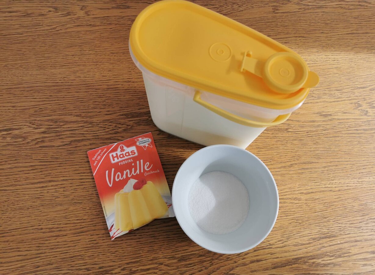 Puddingpulver mit etwas Milch anrühren. Restliche Milch mit Zucker aufkochen, das angerührte Puddingpulver zugeben und unter ständigem Rühren ca. 1 Minute kochen lassen.