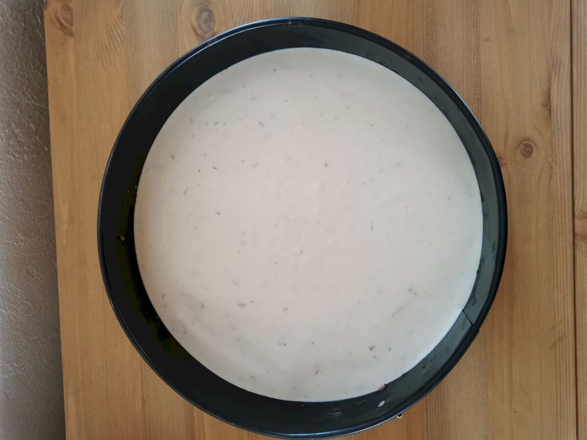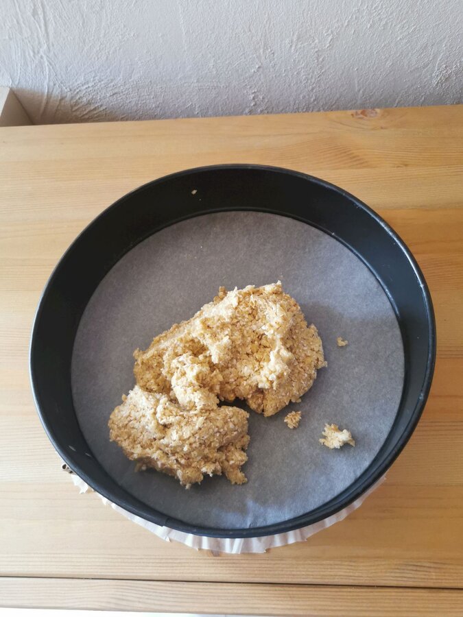 - Den Rhabarber wild mittig mithilfe eines Backrings platzieren.