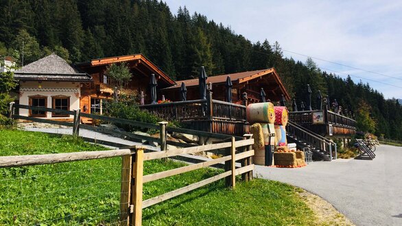 Die Sonne kitzelte unsere Nasen, als wir bei der Bergstation der Komperdellbahn auf unsere Wanderbegleitung warteten. Pünktlich um halb elf schüttelte uns der gut gelaunte Mike, Küchenchef des Leithe Wirtes und Ideengeber der Schmankerl-Wanderung (gemeinsam mit Restaurantleiter Peter Mangott), die Hand und wir machten uns sogleich auf den Weg Richtung Leithe Wirt. Unsere Mägen knurrten bereits. Hungrig sollten wir nach dieser kulinarischen Wanderung jedoch mit Sicherheit nicht bleiben. Dafür sorgte Mike und sein Gehilfe Florin, der die Köstlichkeiten zu unseren Kulinarik-Stopps per Vierrad lenkte.