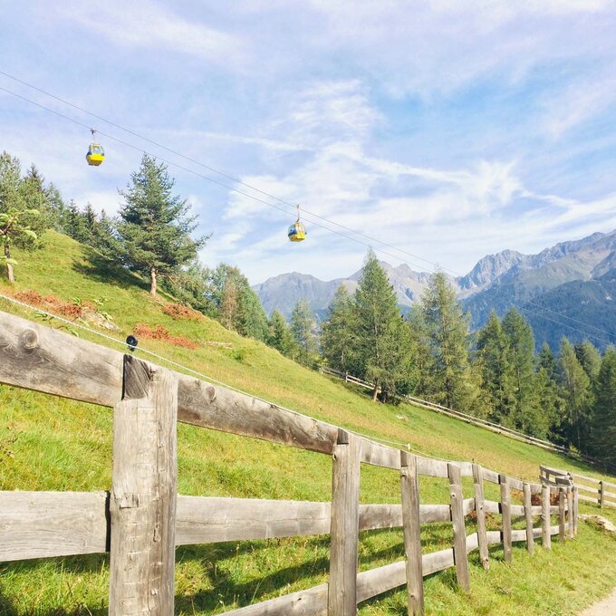 Nach nur wenigen Schritten erreichten wir unseren ersten Stopp: die Komperdellalpe. Der erste Teil unserer Wanderung ist übrigens der beliebte kinderwagentaugliche Panorama-Genussweg, auf dem du im Sommer von Serfaus bis nach Ladis wandern kannst (12,68 km, Gehzeit: 4 Std.). Im Winter ist eine Wanderung zwischen Komperdell und Möseralm möglich (5,24 km, Gehzeit: 1 h 15 min).