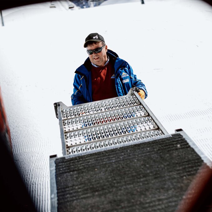 Was er an seinem Job am liebsten mag? „Ich bin gern bei den Leuten“, sagt er. Lange war er auch als Pistenpräparierer unterwegs, aber irgendwann „hat mir das keinen Spaß mehr gemacht“, erzählt er. Ein paar Jahre lang hat er dann als aktiver Fahrer ausgesetzt und war als Vorführer für Pistenmaschinen in Italien engagiert. „Ich bin ganz fanatisch gewesen“, sagt er in seinem Südtiroler Dialekt.