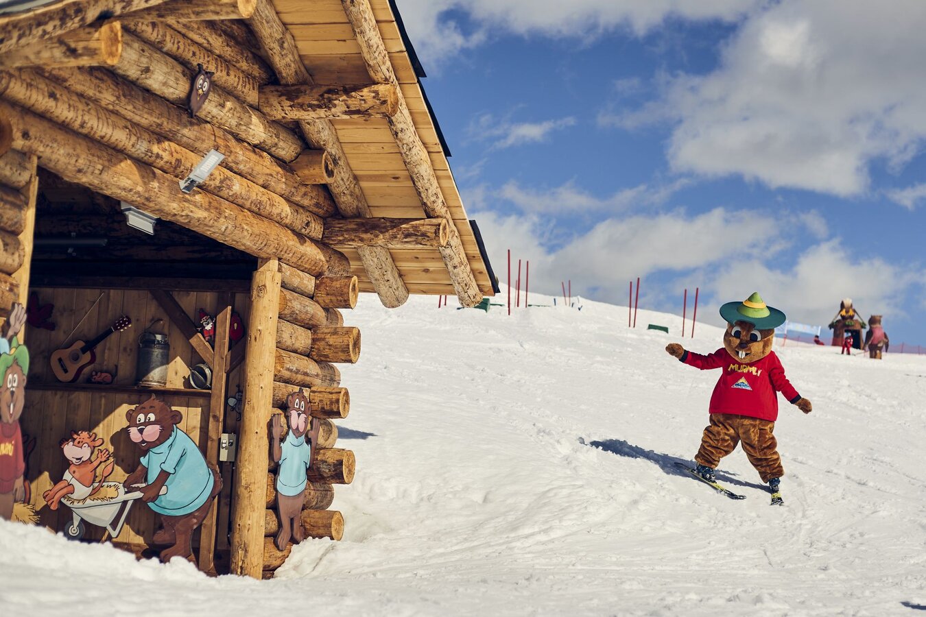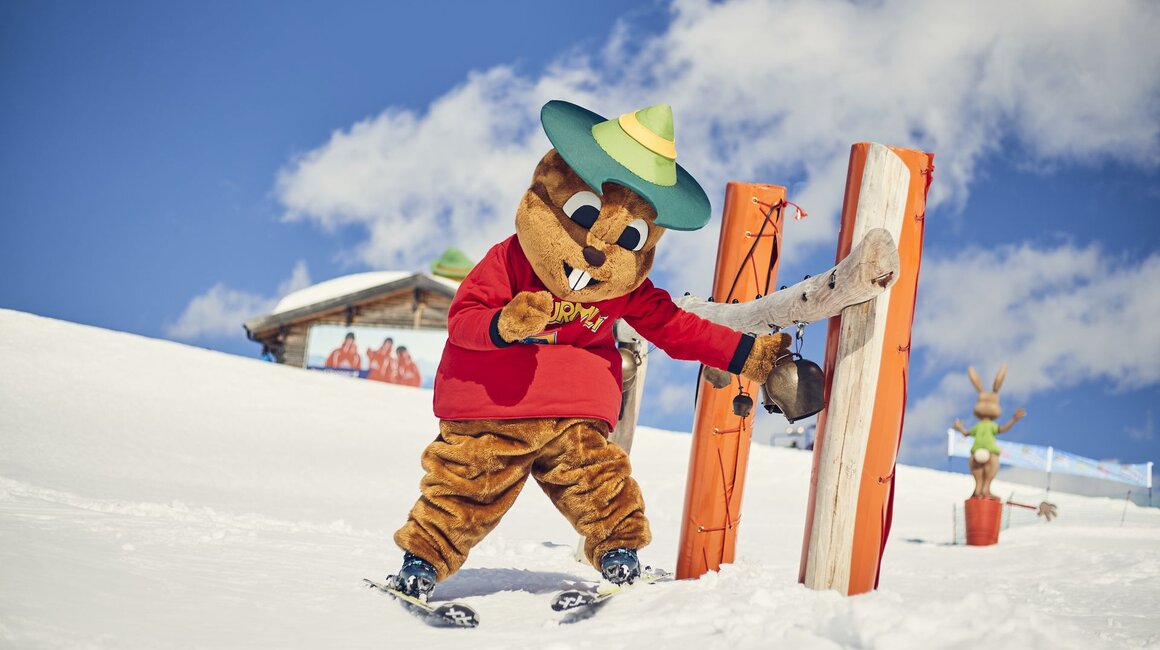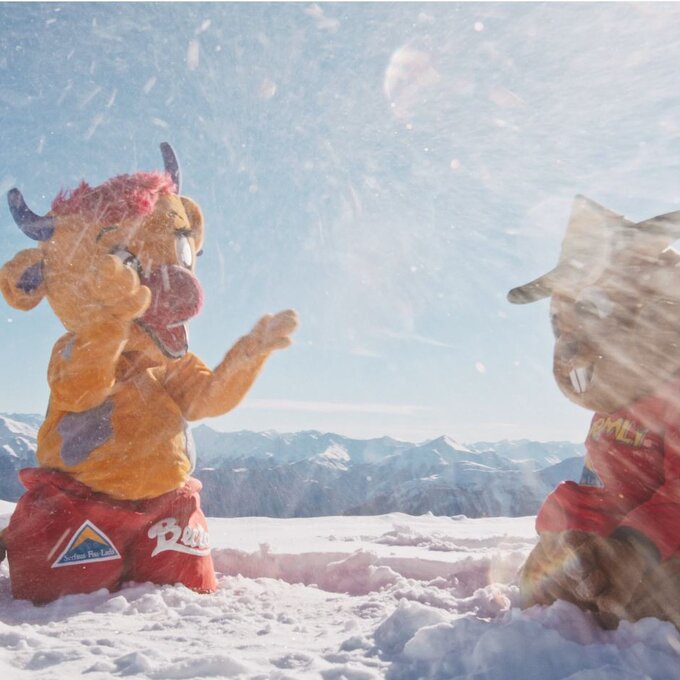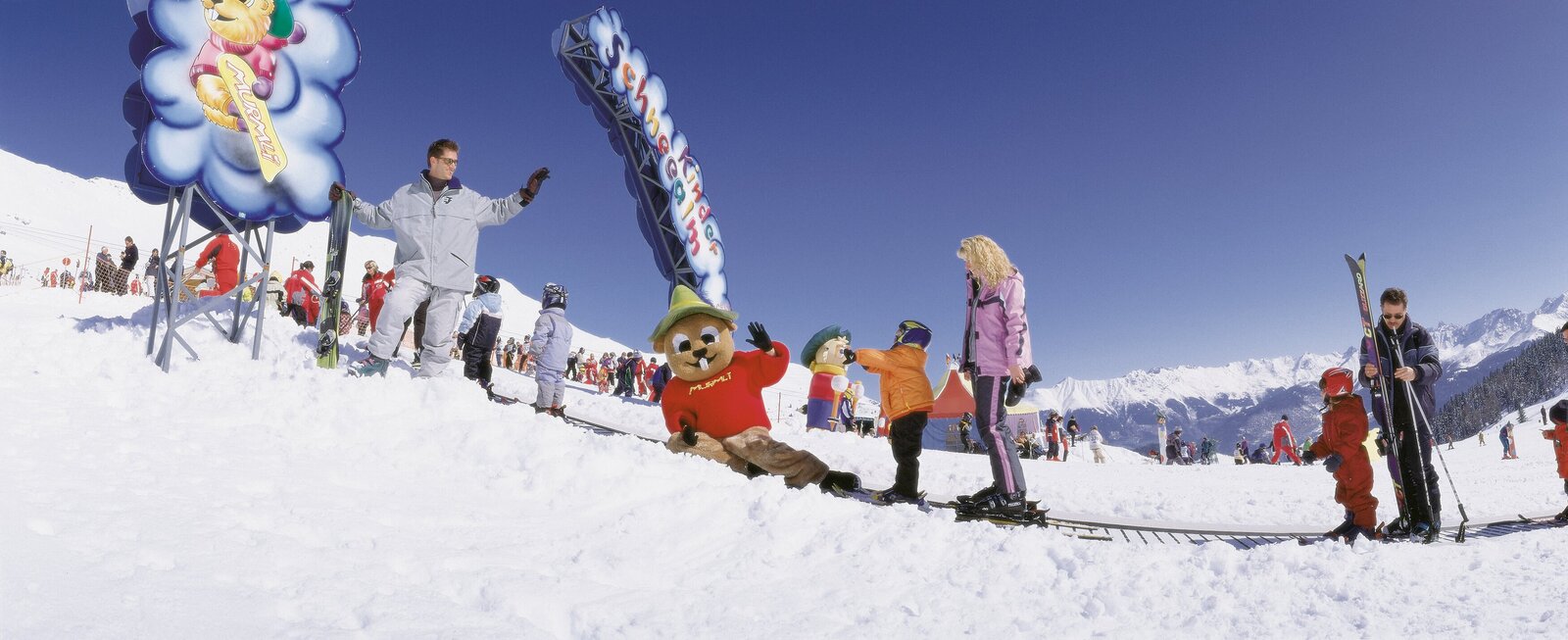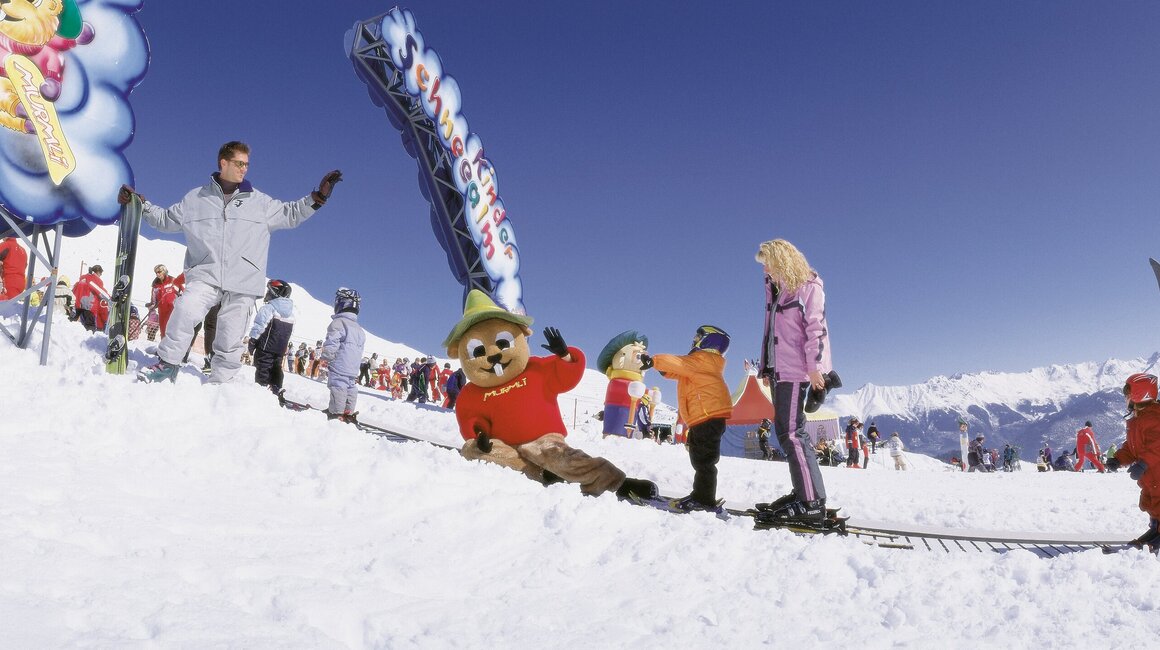 „Natürlich kann auch ich Ski fahren. Es gehört zu mir wie der Schnee zum Winter oder die Albernheiten zu einem spaßigen Tag, die ich gerne mit meiner Freundin Berta anstelle. Das erste Mal stand ich im Winter 1994/95 auf der Piste. Auch das Snowboarden, Rodeln und Langlaufen habe ich sofort getestet. Wie du dir nun vielleicht denken kannst, mache ich keinen Winterschlaf. Das Toben am Berg kann ich mir doch nicht entgehen lassen“, antwortet Murmli. Da gebe ich ihm recht. „Das neue Maskottchen sollte unsere Sportarten am Berg verkörpern und die Kinder zu Sport am Berg animieren. So wurden ihm gleich Ski und Snowboard angeschnallt“, erinnert sich Rudolf Hammerle von der Skischule Serfaus zurück. Von Anfang an konnte er sich mit der klaren Familienpositionierung identifizieren und gilt als einer der Regionspioniere.