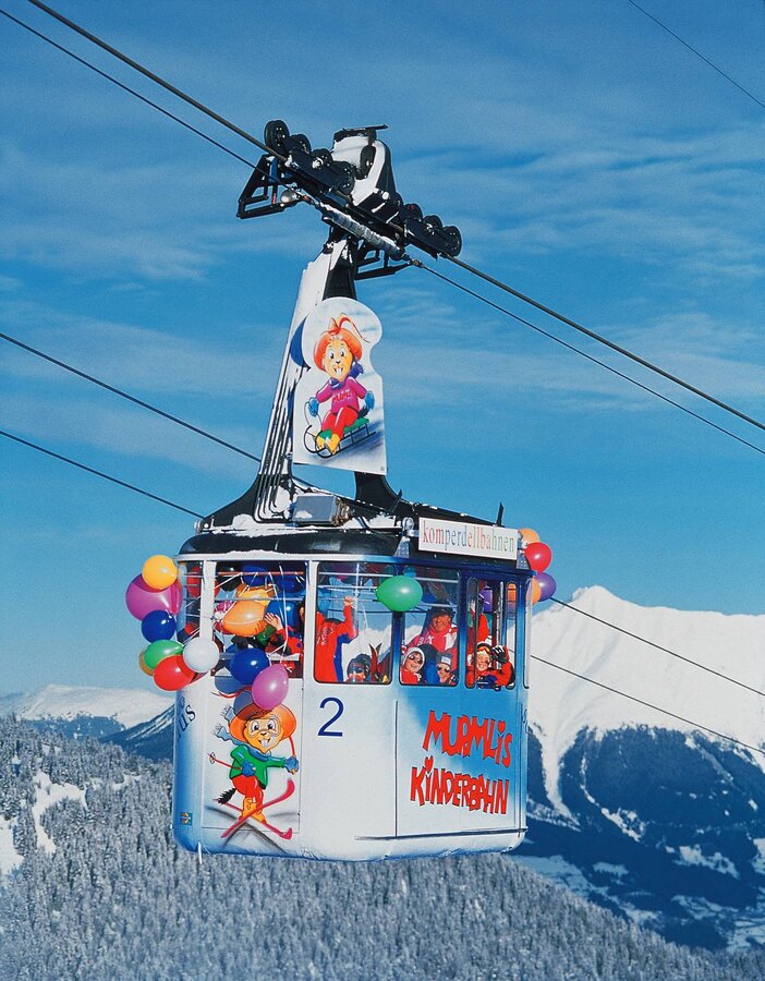 „In den 90er Jahren mussten die Urlauber lange Stehzeiten an der Talstation in Kauf nehmen. Die Bahn sollte daher den Eltern den Urlaubsalltag erleichtern und wurde zur Attraktion für die Kinder. Die Eltern konnten sie an der Talstation in der Wartehalle abgeben. Die Skischulkinder fuhren dann gemeinsam mit Skilehrern hinauf aufs Komperdell. Witzige Anekdote am Rande: Mit einer Rutsche ging es vom Seilbahngebäude hinunter in die Kinderschneealm. Diese war aber zu Beginn geschlossen und etwas zu steil“, schmunzelt Rudolf Hammerle. Und heute? Na ja, heute gibt es die einstige Kinderseilbahn leider nicht mehr. Trostpflaster: Im Starrest-Kinderrestaurant erinnern beide Kabinen an vergangene Zeiten.