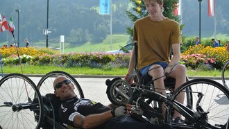 Meine ersten Versuche im Handbike waren katastrophal. Mir war klar, dass es anstrengend sein wird, mit den Händen statt Füßen zu kurbeln. Dass es aber so anstrengend sein wird, wusste ich nicht. Dazu kommt, dass wir auf knapp 1.500 Meter Seehöhe wohnen und man erst einmal den Berg runter muss, um Strecke machen zu können. An das war am Anfang noch nicht zu denken. Den Moment, als ich das erste Mal vor meiner Haustür gestartet bin, den Berg runter, im Flachen einige Kilometer fahren konnte und anschließend den Berg wieder rauf schaffte, werde ich wohl so schnell nicht vergessen. Nach einiger Zeit, als ich mir schon mehr zutraute, hab ich mit Benefiz-Radtouren begonnen. Ich muss immer wieder erfahren, dass Menschen, die ebenfalls durch einen Unfall (privat) in die gleiche Situation geraten sind, oft nur wenig Unterstützung von offizieller Seite erhalten. Darum habe ich 2015 den Verein "Sport's Life" ins Leben gerufen. Es ist ein kompletter Irrglaube, dass Betroffene alles von der Krankenkasse bezahlt bekommen. Oftmals gelangen sie in große finanzielle Schwierigkeiten. Mit den Benefiz-Radtouren im In- und Ausland möchte der Verein einfach helfen. Und es ist ein verdammt gutes Gefühl, helfen zu können. Insgeheim ist es ja auch eine Therapie für mich.