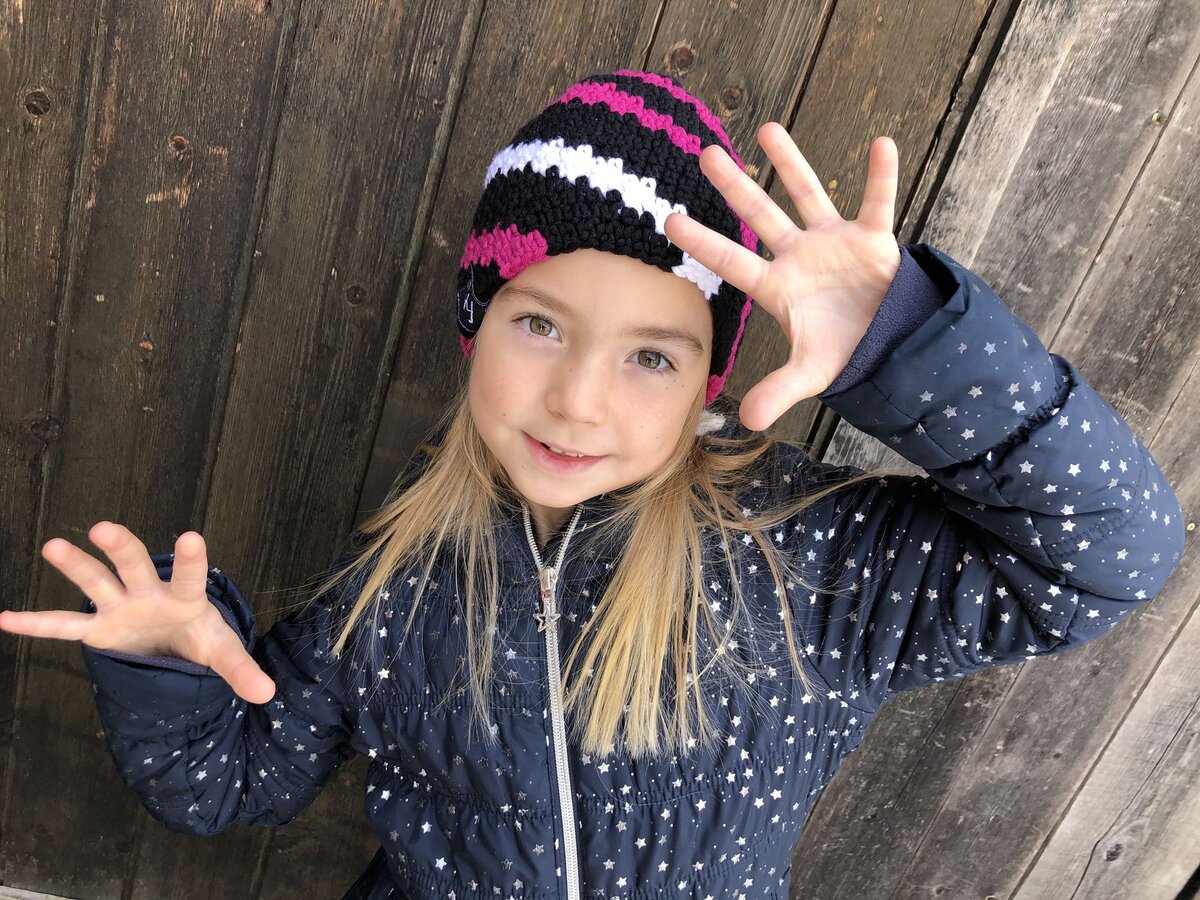 Ihre kleines Unternehmen ist aus den Kinderschuhen herausgewachsen und hat nun bereits ein ganzes Jahrzehnt auf dem Buggl (Rücken). Doch wie ist es dazu gekommen, dass sie ihre Leidenschaft professionell ausüben? „Meine Schwester Heidrun hat schon seit klein auf immer gehäkelt. Angefangen hat sie mit Tischdecken, Dekohüten und Dekoblumen. Irgendwann hatte sie einen Topflappen in Arbeit und ich fand die Farbe und das Muster cool und daraus entstand dann das erste Stirnband. Da ich damals in der Skischule gearbeitet habe und Helme noch nicht so angesagt waren, fiel ich richtig auf und einige Kollegen wollten auch eins. Heidi zeigte mir wie‘s geht und so fing alles an. Dies müsste ca. 2008 gewesen sein. 2010 haben wir dann unsere Mini-Firma offiziell gegründet und feiern heuer unser 10-jähriges Jubiläum“, berichtet mir Elena stolz.