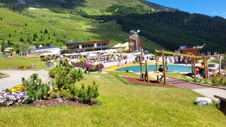 - Der große Spielplatz mit Wasserspielen, Sandbereich und Rutschen bietet Spaß und Abwechslung.