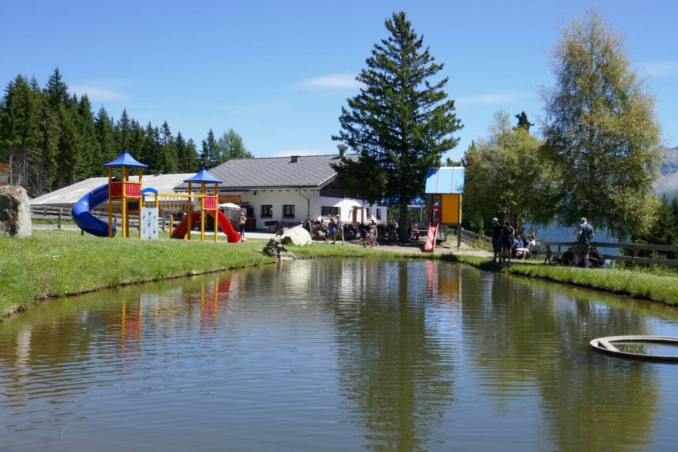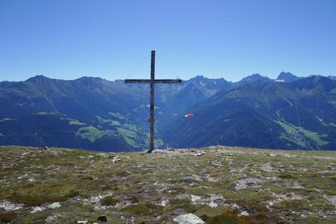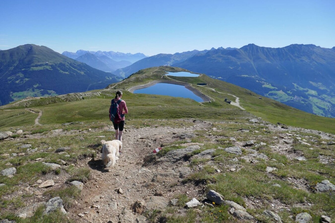 Mit der Schönjochbahn zum Fisser Joch (F087), nun zum Schönjöchl Kreuz (F079) und über Frommes, Weg Nr. 5 (F072), zur Frommeshütte (F066/067). Weiter auf dem Fisser Höhenweg Nr. 15 bis Gample (F065), links hinunter bis zum Fahrweg Nr. 10 (F057). Rechts abbiegen und dem Fahrweg bis zur großen Weggabelung (F059) folgen. Ab dort links abbiegen und in 10 Minuten zur Kuh Alm (F121). Abstieg nach Fiss über den Fahrweg Nr. 9 oder via dem Hexenweg zum Waalsteig Nr. 8.