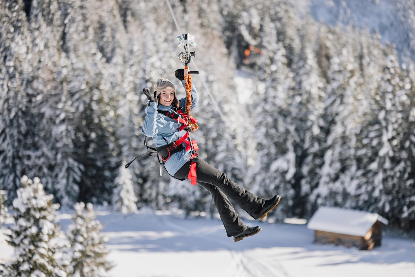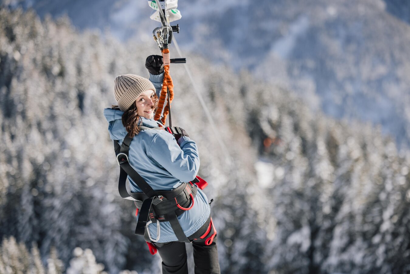 Dank automatischer Bremse und professioneller Betreuung ist der Serfauser Sauser auch für Einsteiger bestens geeignet. Einfach einhängen, loslassen und das Gefühl des Fliegens genießen – in luftiger Höhe, über verschneite Wälder und sonnige Pisten hinweg.
