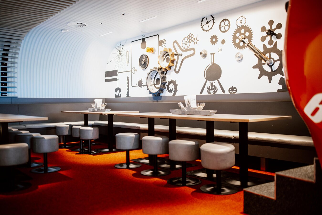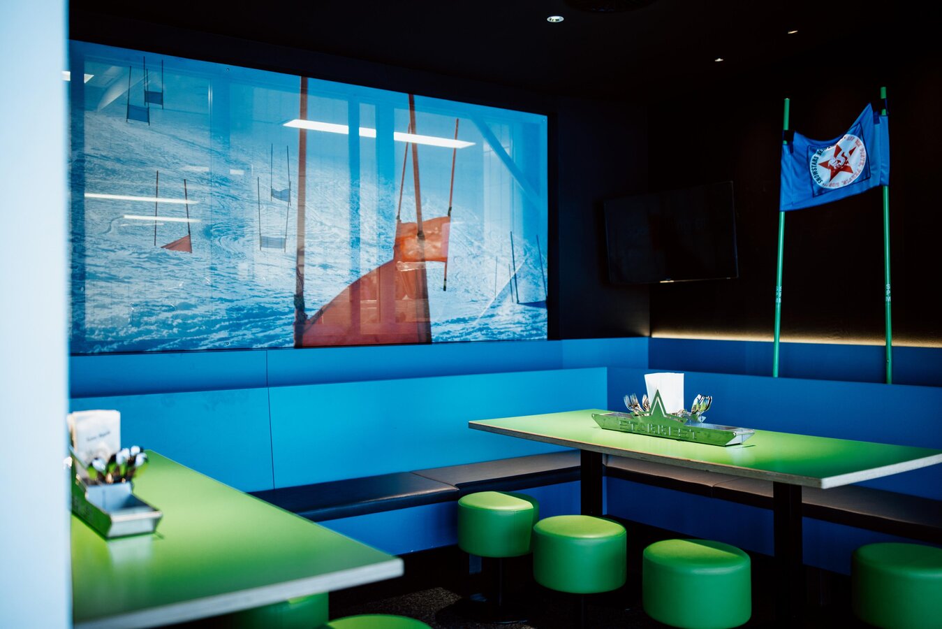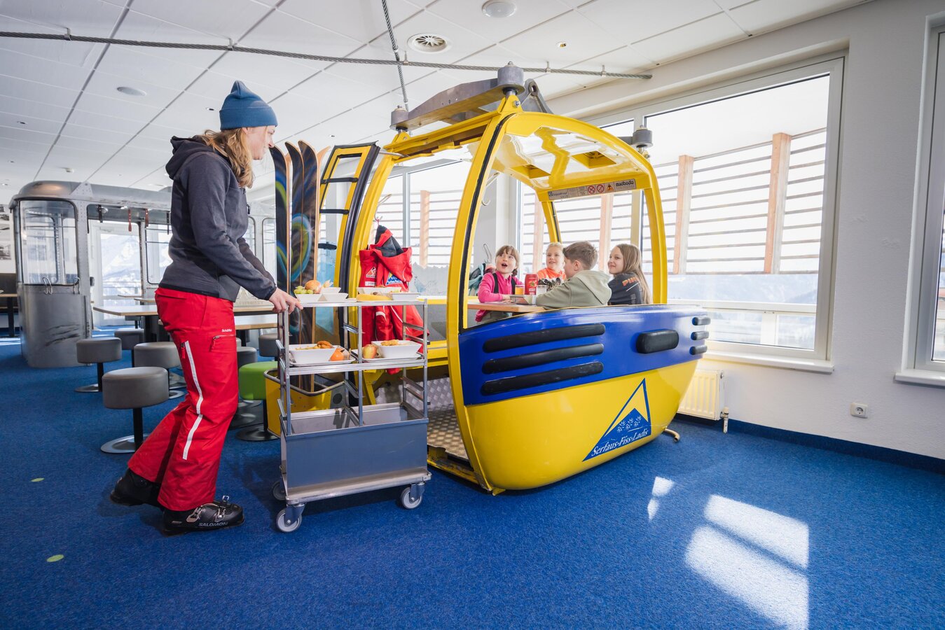 Das Kinderrestaurant „Starrest“ ist ein Highlight für Kinder. Das Restaurant liegt an der Bergstation der Komperdellbahn und ist von der Kinderschneealm aus direkt erreichbar. Das „Starrest“ nimmt Kinder ab 6 Jahren bis zum Teenager-Alter mit auf eine spannende Entdeckungsreise durch die sportliche und abenteuerliche Welt des Winters. In 7 vollkommen unterschiedlich gestalteten Räumen bekommen die Kids & Teens ihr Mittagessen. So springt im Raum „Freestyle“ ein Skifahrer als cooles Graffiti von den Wänden, der Raum „Time Warp“ ist eine Zeitreise durch die Skigeschichte und im „Race Room“ können die Skilehrer mit ihren Schülern Rennszenen analysieren, die vorher im Rahmen der Skischul-Ausbildung aufgenommen wurden.