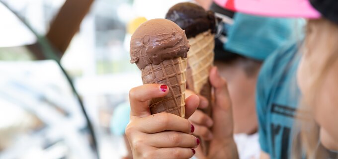 Erlebnisfaktor: Eis essen mit Bergblick ist ein Genussmoment der besonderen Art.