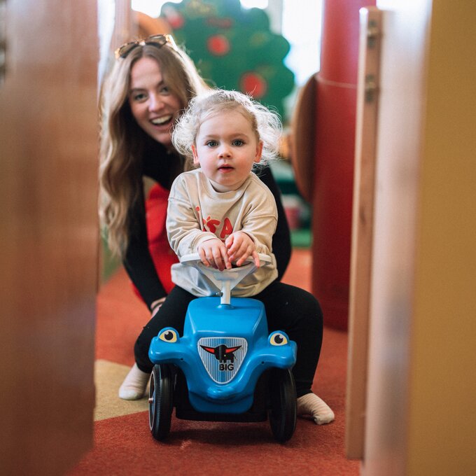 Ob im Kletterturm, in der Schlafecke oder beim Kinderkino – hier ist viel Raum zum Entdecken, Ausruhen und Lachen. An schönen Tagen geht's natürlich raus in den Schnee: In Berta’s Miniland wird gespielt, gebuddelt und frische Bergluft geschnuppert.