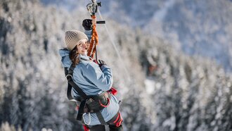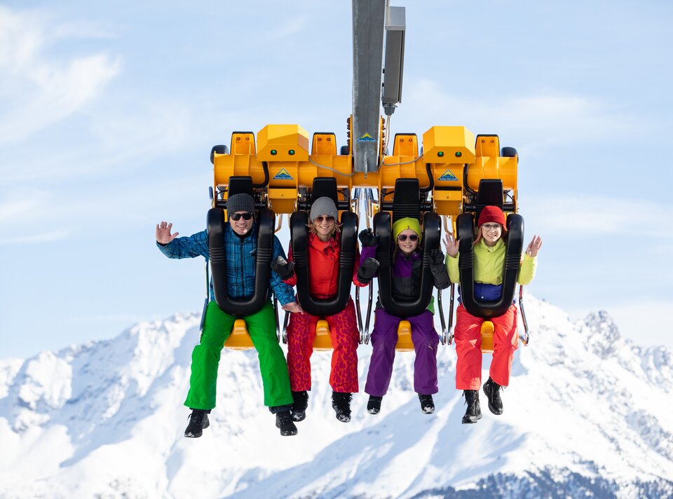 Das Gefühl, schwerelos über dem Schnee zu schweben, kombiniert mit freiem Blick auf die umliegenden Gipfel, macht dieses Erlebnis einzigartig. Adrenalin trifft Winterpanorama – intensiver lässt sich der Berg kaum erleben.
