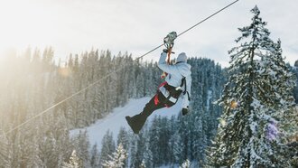 Während unter dir Skifahrer ihre Schwünge ziehen, gleitest du in mehreren Etappen durch die klare Bergluft. Das Gefühl von Freiheit, kombiniert mit Tempo und Aussicht, macht den Sauser zu einem absoluten Must-do für Wintergäste.