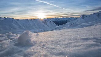 enchanted by views across the Tyrolean peaks against the backdrop of the rising sun. A truly magical