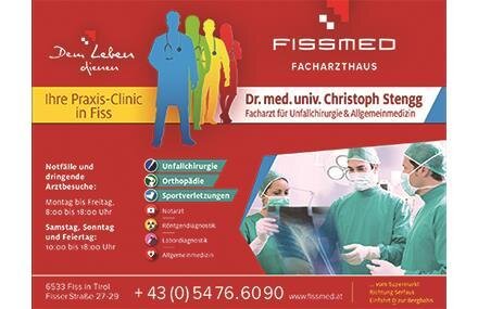 Since 1998, FISSMED has been the first point of contact for any injuries, illnesses, and emergencies of all kinds in the tourism region of Serfaus-Fiss-Ladis.