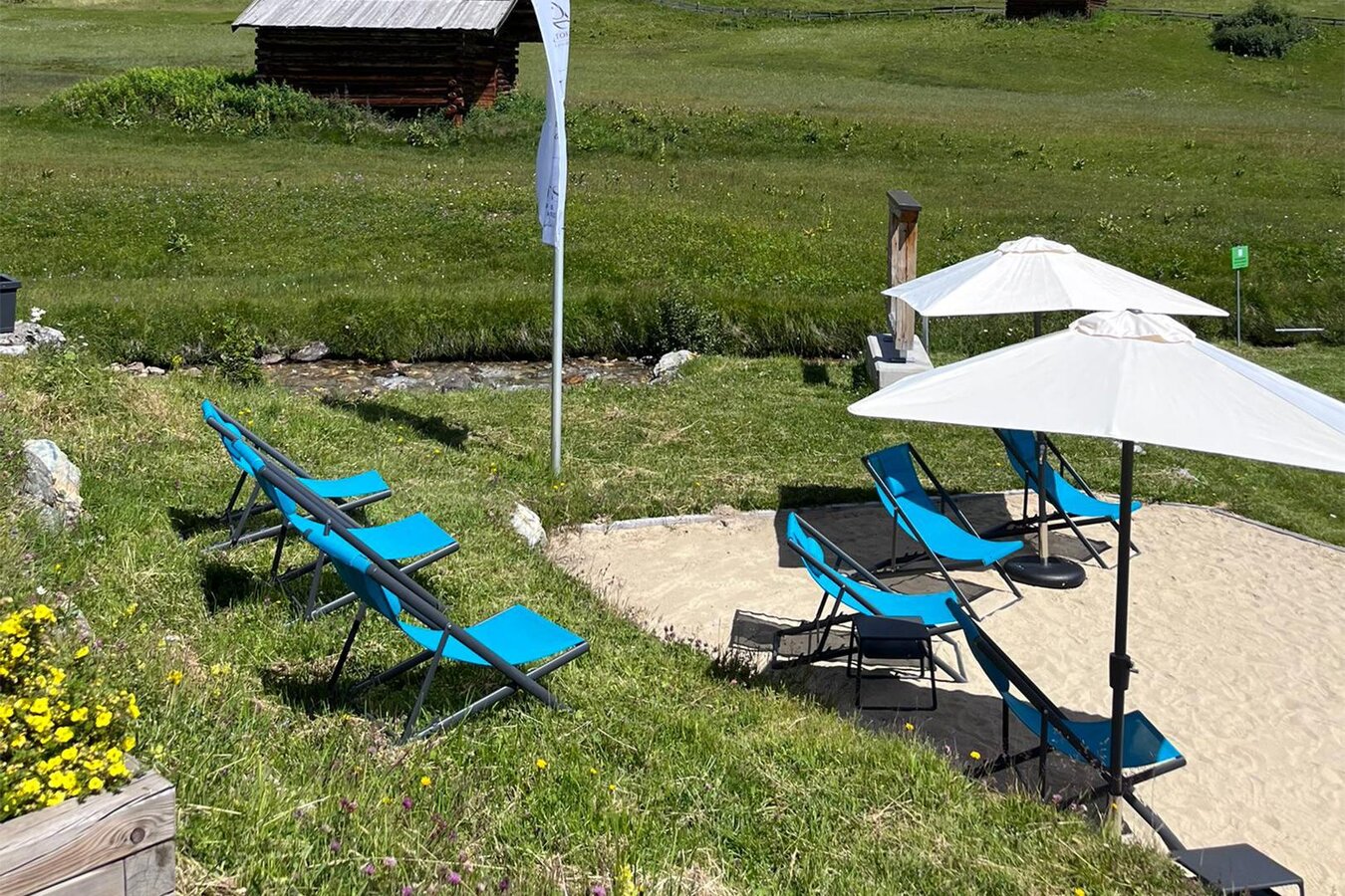 There is a small gastro hut with delicious snacks, ice cream and drinks right on the Lausbach river. Enjoy a wonderful summer day on our specially created beach area with sun bed & loungers in the field.