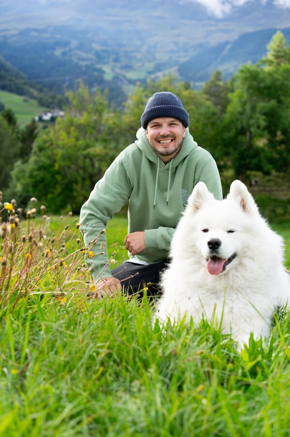 Hi, I'm Philip Kirschner – born and raised in Serfaus. Since childhood, I have loved dogs, and with my Samoyed Yukon, I am out in our mountains every day.