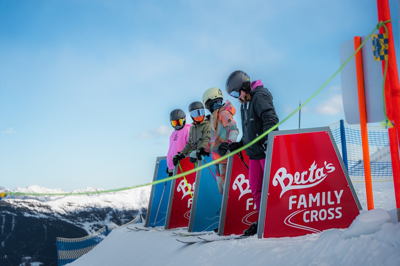 On Berta's Familycross, you can dive into the world of skicross together! Gentle wave tracks, steep turns, and small jumps offer the perfect amount of action – ideal for beginners and intermediates. It’s all about having fun on the slopes! The diverse course is an adventure for the whole family, and you can race off together from the start gate as a group of four.