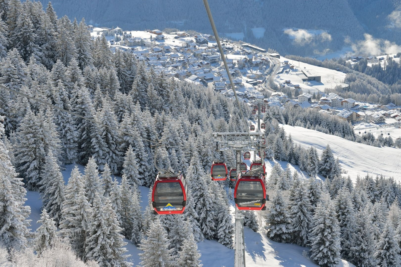The Schönjochbahn is the main cable car in Fiss and the feeder to the northern slopes, where snow is guaranteed until spring. Wonderful panoramic view from the Schönjoch. Also ideal for repeat runs. Modern 8-seater gondola lift with panoramic windows.