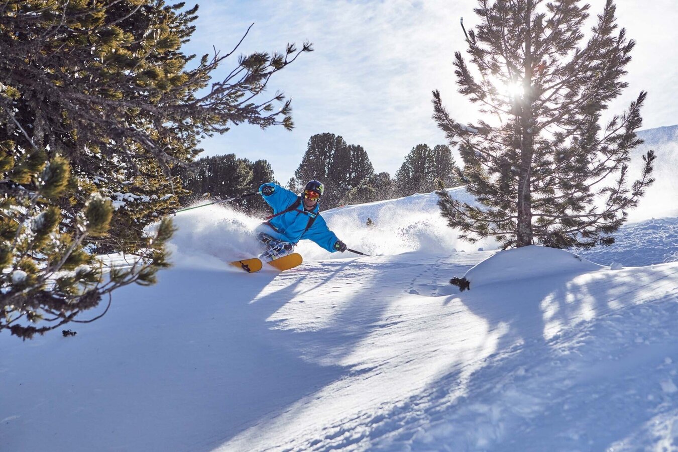 The Adlerroute starts right in the middle of the Adlerpiste and winds its way alongside a beautiful pine forest straight into the powder paradise of the Fiss North Side. Strong thighs definitely come in handy here – but stay relaxed and enjoy the flow!