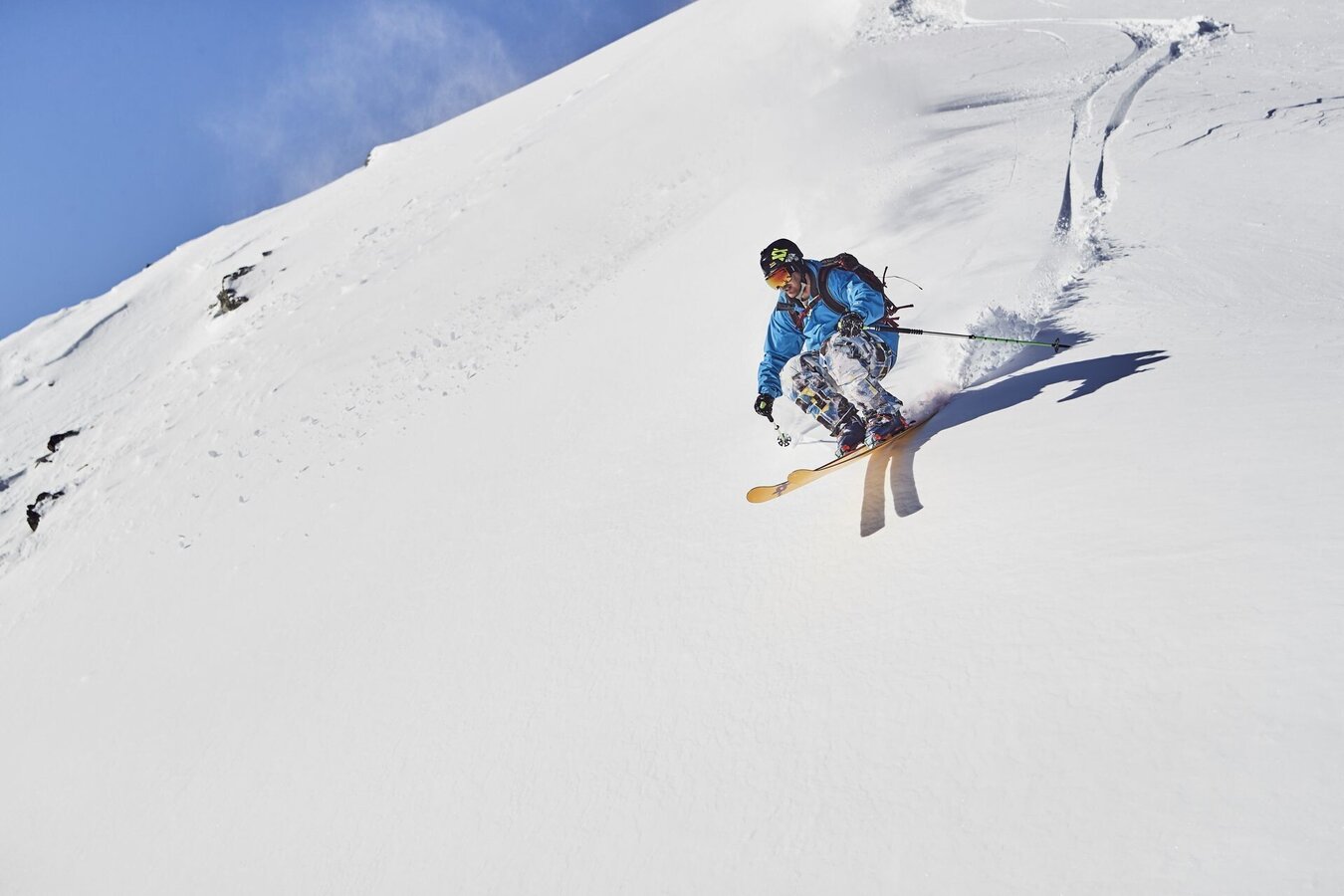At an altitude of 2,600 meters, directly at the top station of the Almbahn (Crystal Cube), the Kamikaze Route begins. This approximately 2,000-meter-long descent winds its way down the south side into the valley, offering breathtaking views of Fiss and the stunning mountain scenery. With a gradient of over 70% at its steepest point, the route eventually merges into the Kerbbodenabfahrt. In winter, the Kamikaze Route attracts freeriders with dreamy powder snow, while in spring, perfect firn conditions await.