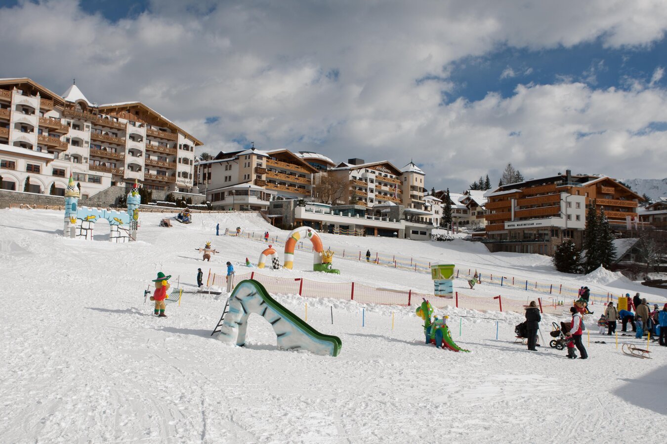 In Murmli Park even the littlest ones can playfully learn to ski. In the middle of Serfaus is the Murmli Park on a gently sloping pasture some 10,000 m² in size. The park is open to everyone free of charge. Two conveyor belts for children and all sorts of play figures guarantee adventure and fun for children aged between 3 and 4.