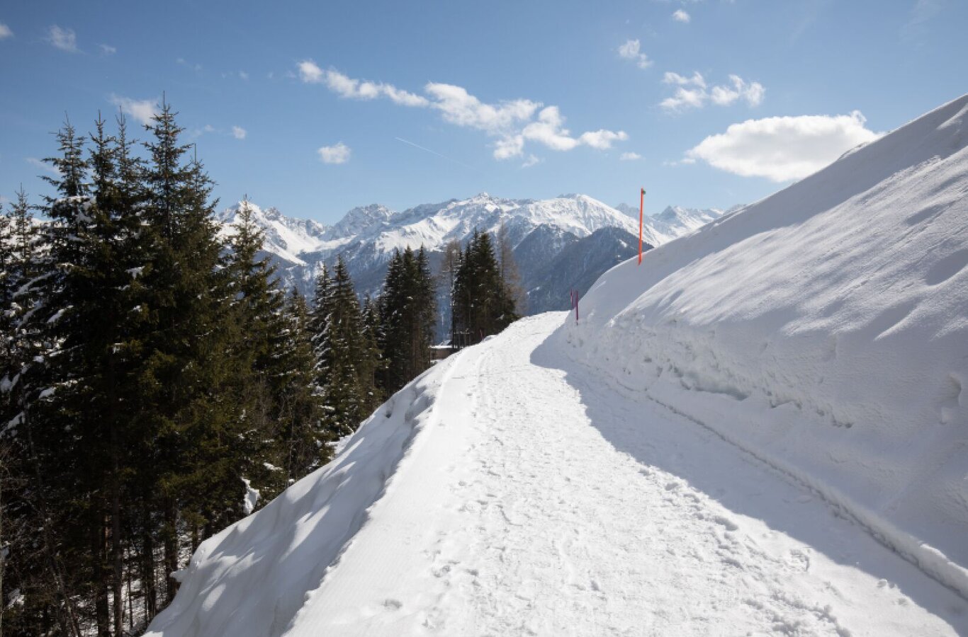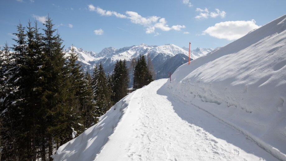 The (winter) hiking trail Edelbachweg leads from the Komperdell mid-station to the Leithe Wirt restaurant.