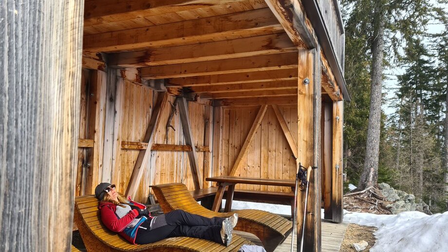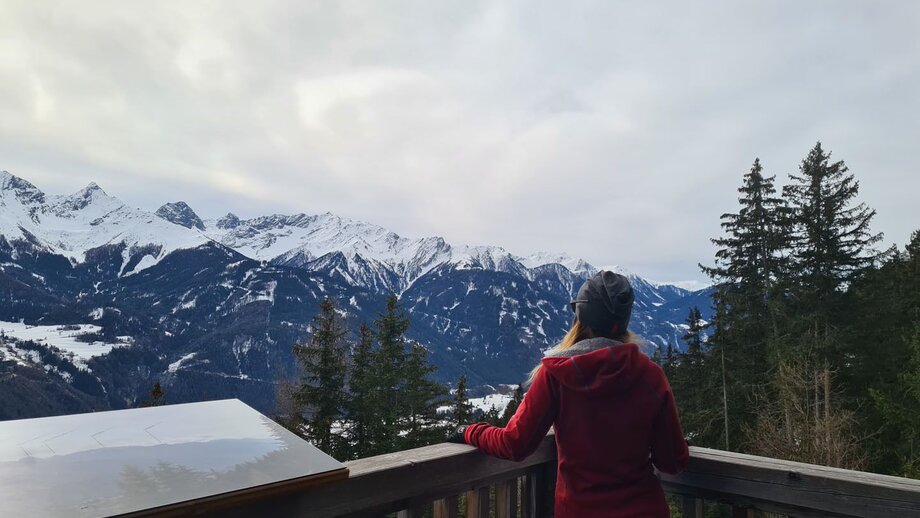 Start: Razil. Use the edge of the slope to get to Weiberkessl. At signpost L001, continue along trail no. 34 and to Schönegg panorama platform. Walk along Rabuschl Weg no. 4 or return to signpost L017 to continue via Falterjöchl or on Obladis Weg no 3.