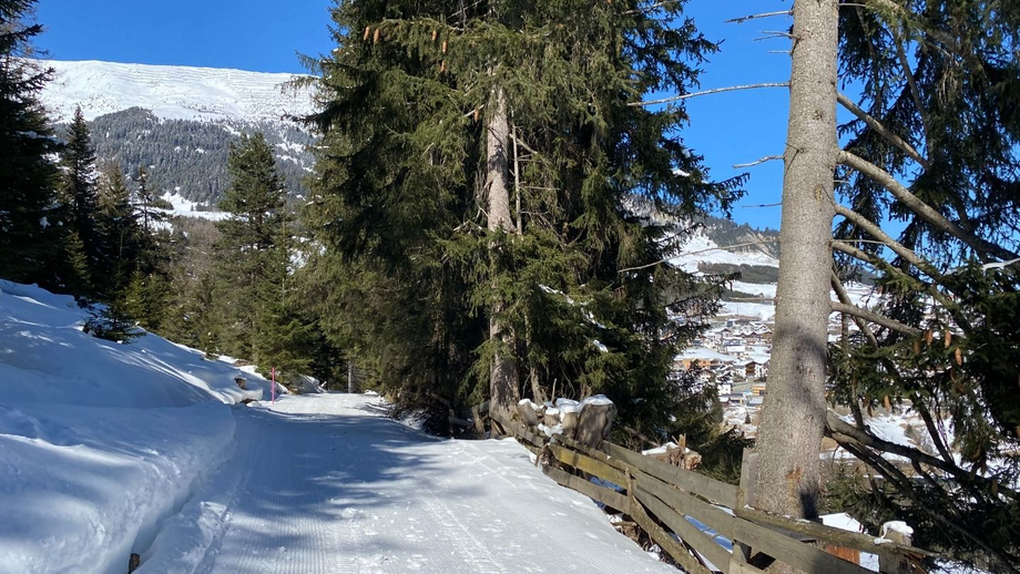 Dorfbahnstraße towards Fiss until the day parking area (S022), turning left onto hiking trail No. 3 through the forest to the forest railway. From here, follow the pedestrian path to Fiss.
