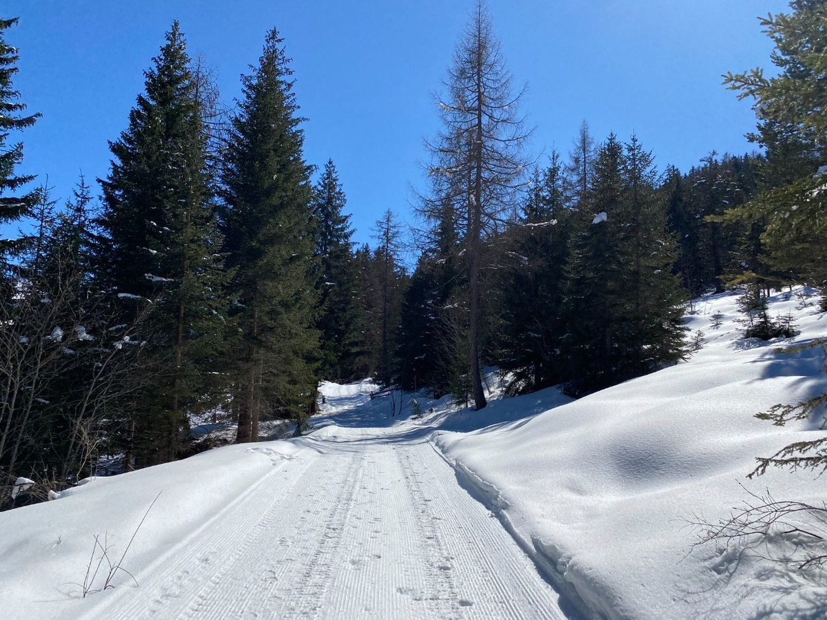 The trail to Serfaus starts directly at the umbrella bar at the Waldbahn.