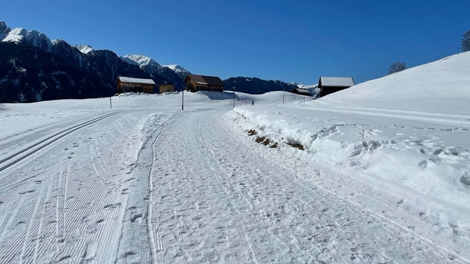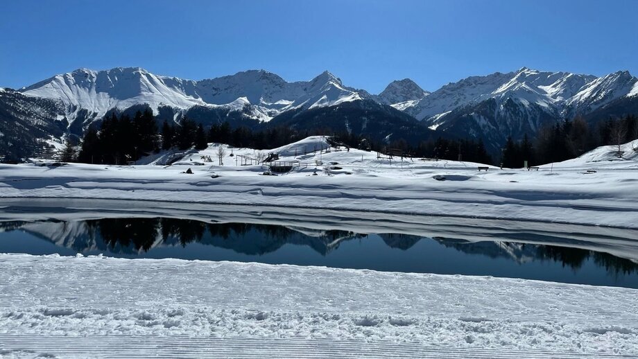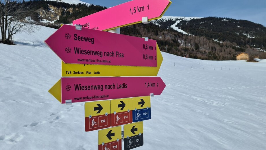 Description: From the village centre (L006), follow a south-westerly direction uphill to the ‘Razil’ area and continue on towards Fiss. At the slope, head right towards the ‘Weiberkessl’ restaurant and slightly above, cross the slope on the left to Berta´s Indianerland. Then continue on parallel to the cross-country trails to Fiss.