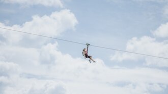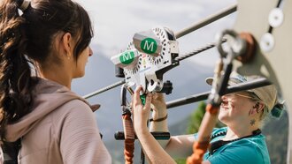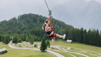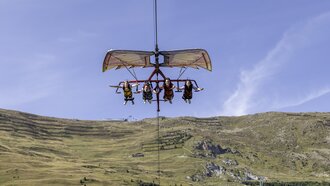 In de zomer wordt de Serfauser Sauser een spectaculaire vliegervaring boven weiden, paden en het indrukwekkende berglandschap. Over een lengte van ongeveer twee kilometer zweef je langs een staalkabel het dal in – met snelheden tot 65 km/u.