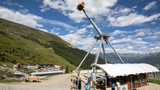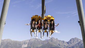 In de zomer wordt de Skyswing in Fiss een bijzondere belevenis met een indrukwekkend panorama. Op ongeveer 22 meter hoogte word je omhoog getrokken, geniet je van het uitzicht over de omliggende bergen – waarna de afdaling zorgt voor een intens gevoel van hoogte en snelheid.