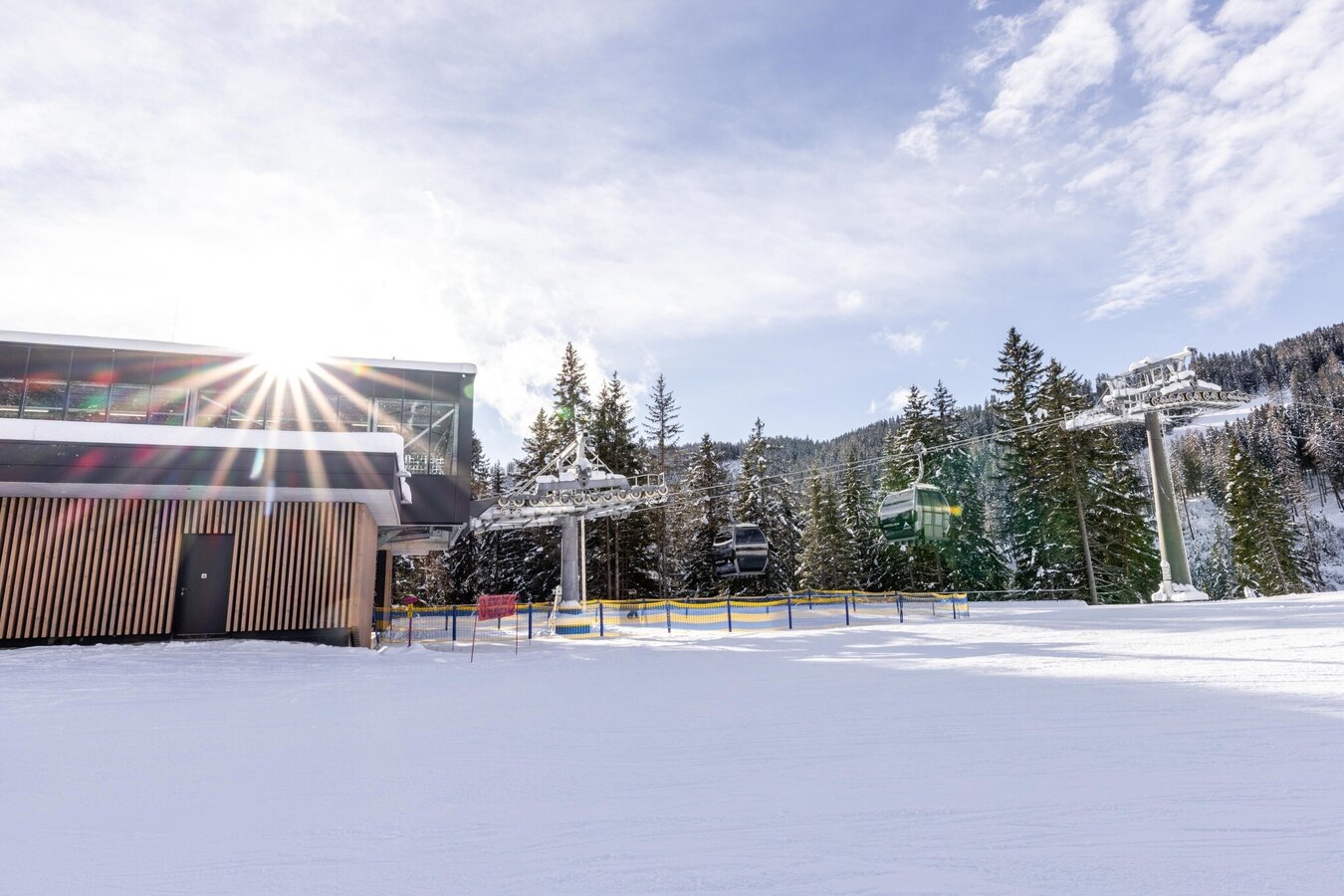 Een moderne gondellift, een van de verbindingsliften naar het skigebied. Ook een terugbrenger richting Fiss, met aansluitingen op de Rastbahn of Sattelbahn. Neem de Sunliner omhoog om de Serfauser Sauser te bereiken.