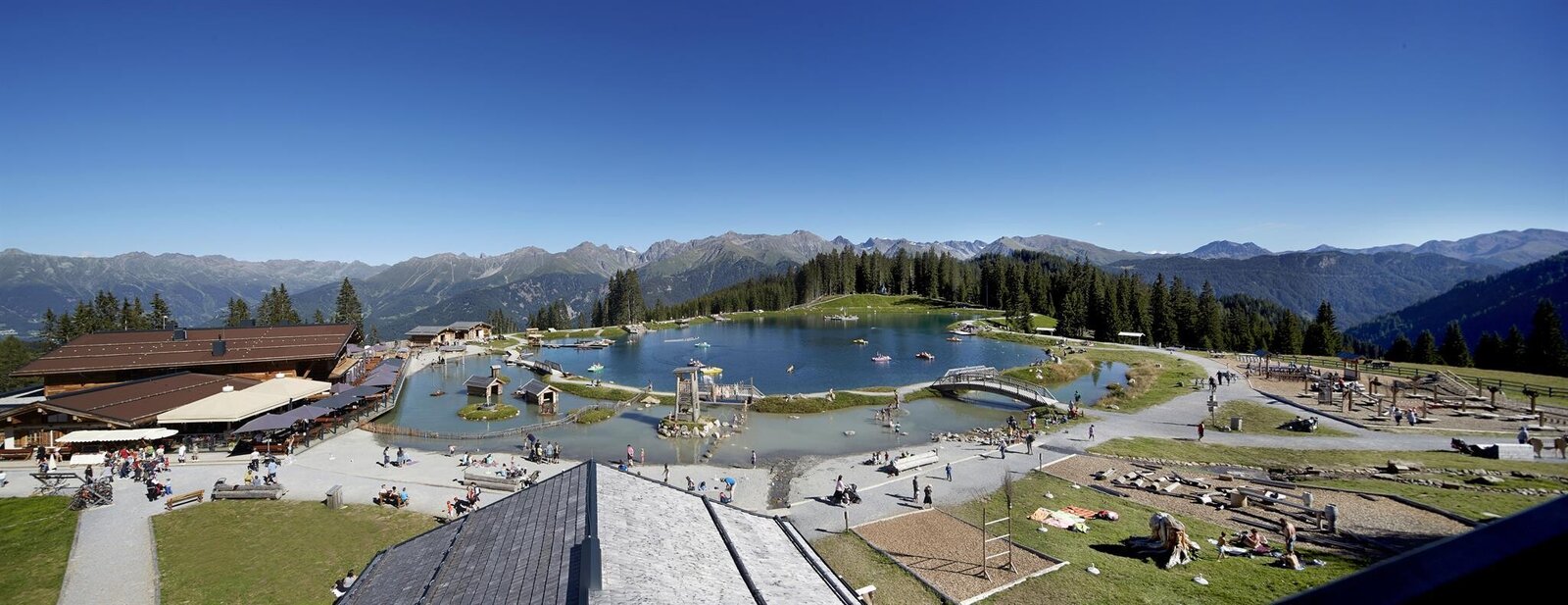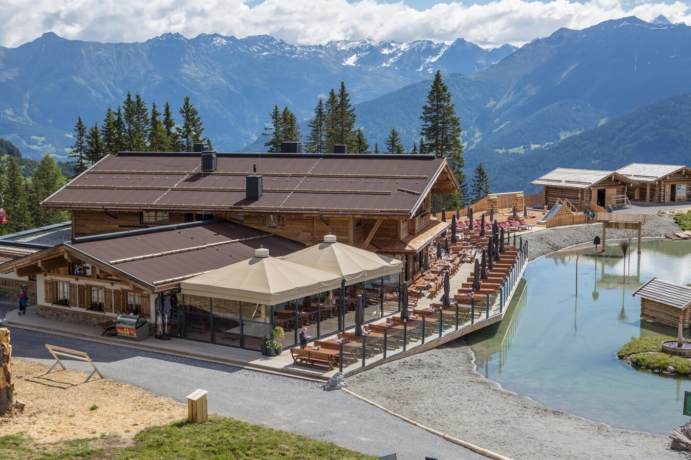 Thanks to its open design and large window fronts, the rustic service restaurant at 1,820 metres above sea level offers a magnificent view of the Högsee lake and the surrounding mountains. The restaurant is just a few steps away from the midstation station of the Alpkopfbahn cable car in Serfaus. As everyone can easily reach the restaurant, lunch at the Seealm Hög restaurant is simply a must.